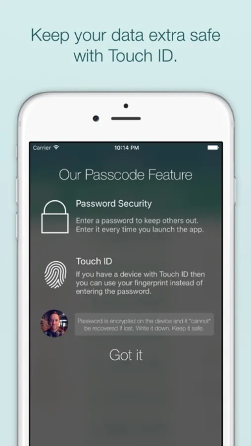 ⋆ Touch/Face ID. Use Apple’s Touch or Face ID for more convenient data protection. Optional.