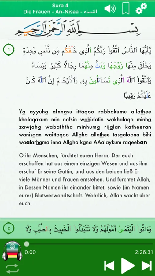 - Automatische Bookmark für jedes Sure Sowohl in Text und Audio
