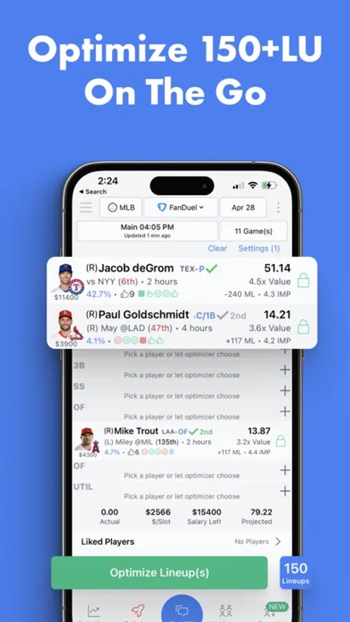 · LineGen™ Optimal lineup generator gives the lineups you want
