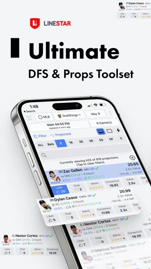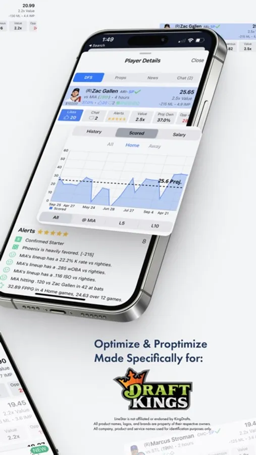 This app is not affiliated with, or endorsed by DraftKings Inc. All trademarks are the property of their respective owners. This app is for entertainment purposes only. Technology behind LineStar is covered by US patents: 9,751,010 - 9,744,450 additional patents pending. LineStar® is a registered trademark of Fantasy Sports Co.