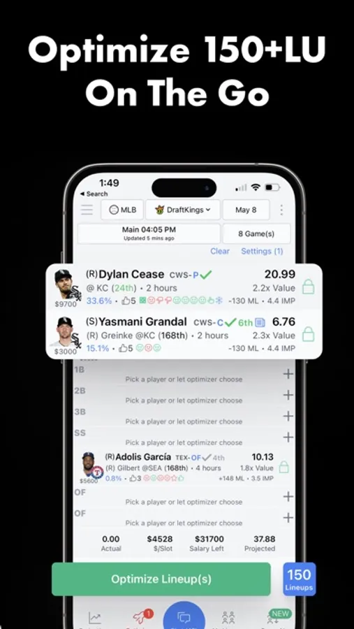 Our secret sauce helps determine the best value for your salary requirement. Easily find hidden gems and underrated value players based on solid data. Generate 150+ multiple variations of lineups to maximize your odds on DraftKings.