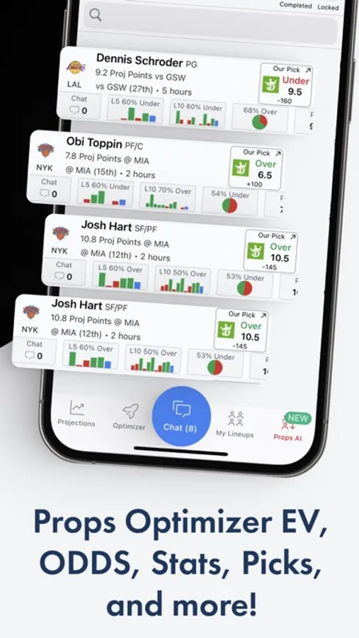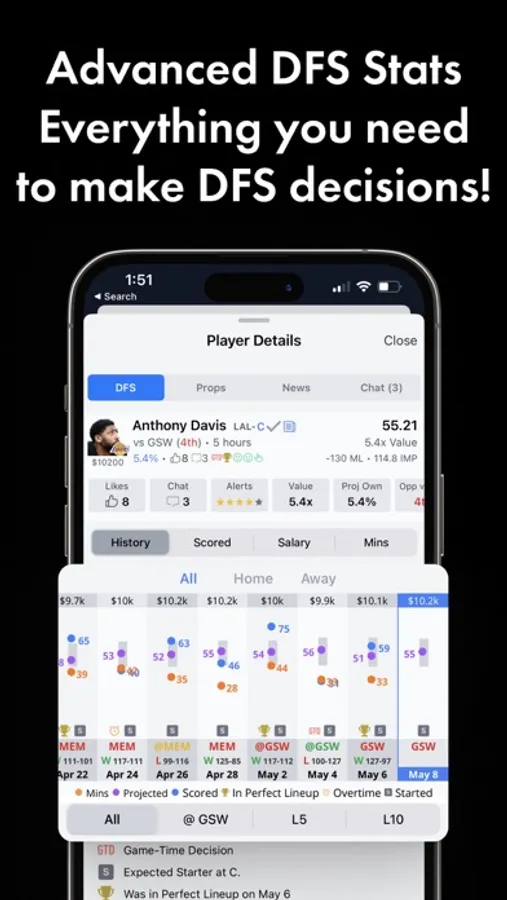 · Touch player's name to see an advanced graph of recent performance vs. our projections