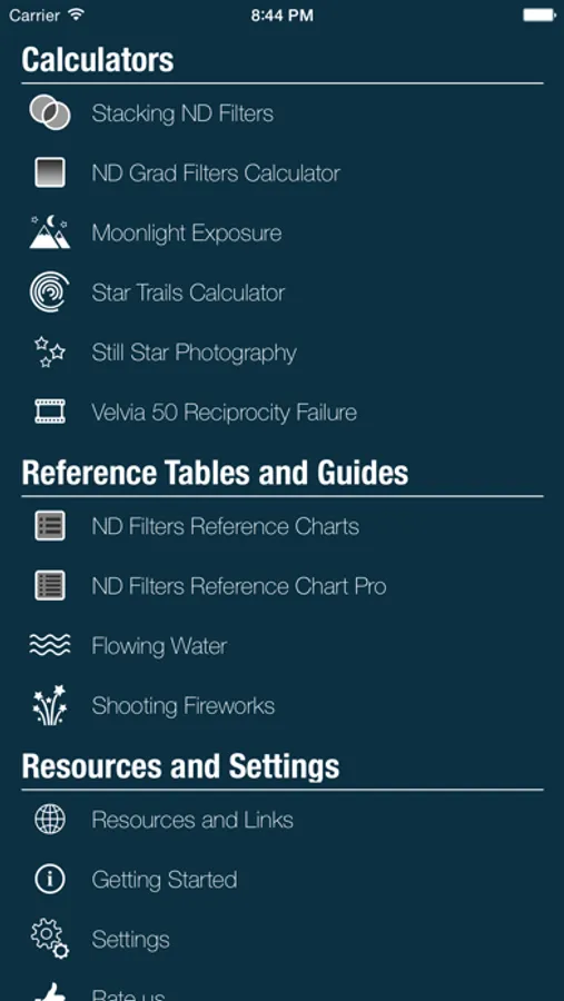 Long Exposure Calculators is a must-have app for any landscape photographer who is shooting with ND filters or with long exposures or at night. All important calculators, reference tables and cheat sheets in one place. Select your shooting parameters and the app will do the rest for you!