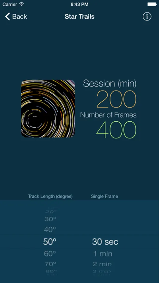 • Star-trails: Want to capture beautiful start trails? Get the right number of shots for stcking them later.