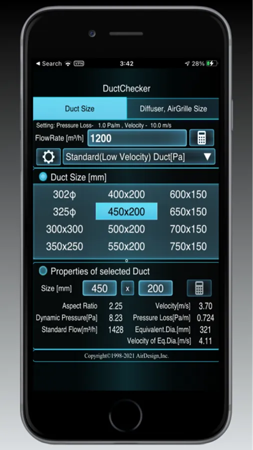 To determine the size of the duct constant pressure method, static pressure regain method, total pressure method, velocity method. Generally uses constant pressure method. This constant pressure method is how to determine the duct dimensions using the same value per 1 m on all duct friction loss. Usually determined by flow diagrams or duct design for slide rules. You can easily determine the duct by using this program.