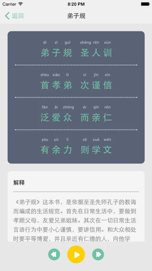 弟子规集孔孟等圣贤的道德教育之大成,提传统道德教育著作之纲领,是接受伦理道德教育、养成有德有才之人的最佳读物。全文讲述弟子在家、出外、待人、接物与学习上应该恪守的守则规范。