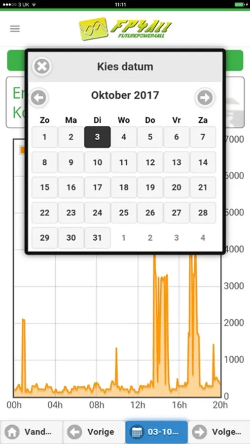 2. De analyse website. Hier kunt u uw actuele en historische verbruik analyseren en bekijken.