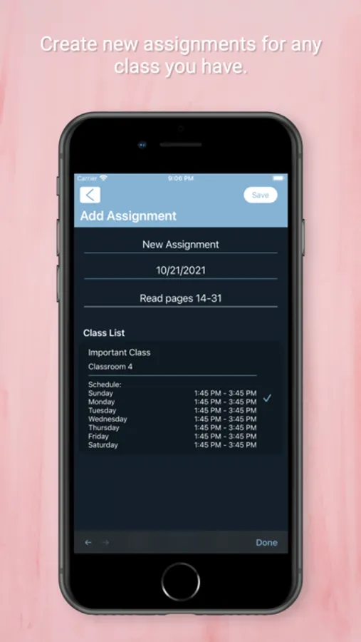 The way you add classes and assignments has changed for the better. You are now able to track classes that have different times on different days. You are also able to more quickly specify the remaining class details.