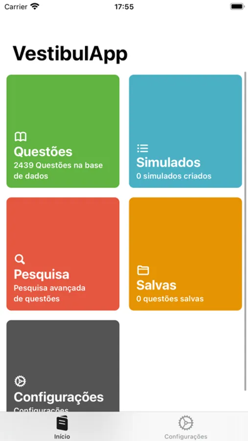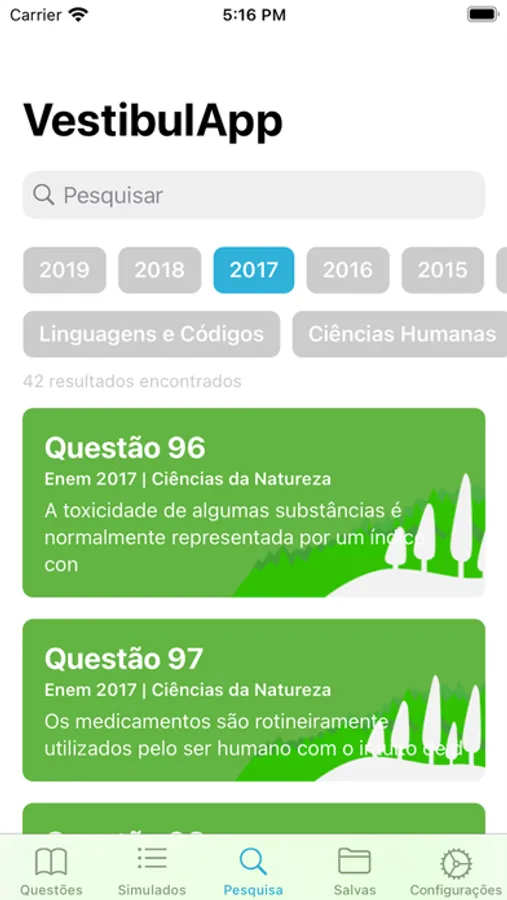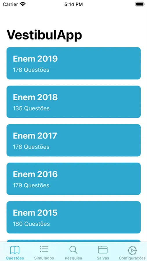 O VestibulApp é um aplicativo de estudo e consulta de questões do ENEM.
