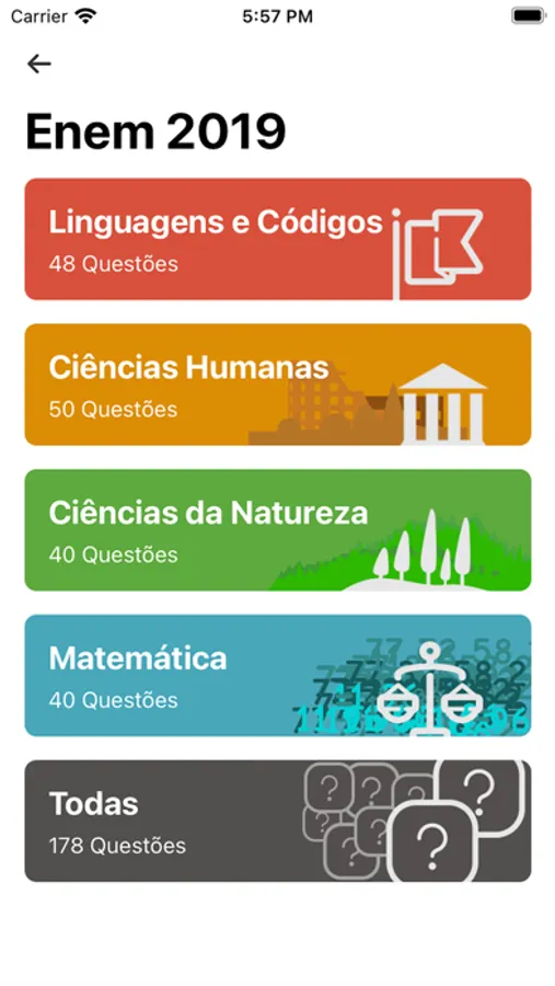 Nosso banco de dados possui mais de 1900 questões dos últimos 10 anos de ENEM.