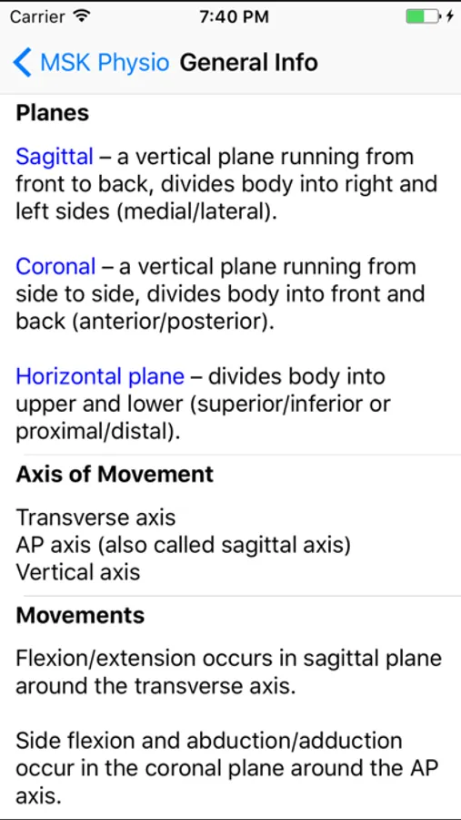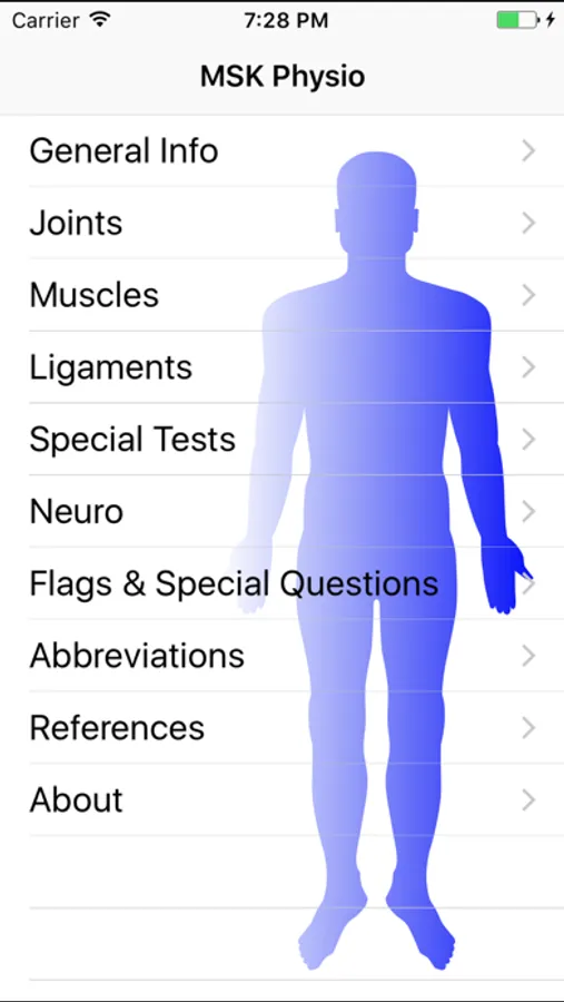 The app is not intended to replace text books but to be a handy revision aid. It has been designed for students, newly-qualified or rotational physiotherapists working in musculoskeletal physiotherapy. It may also be useful for any healthcare professional who works in the musculoskeletal speciality.