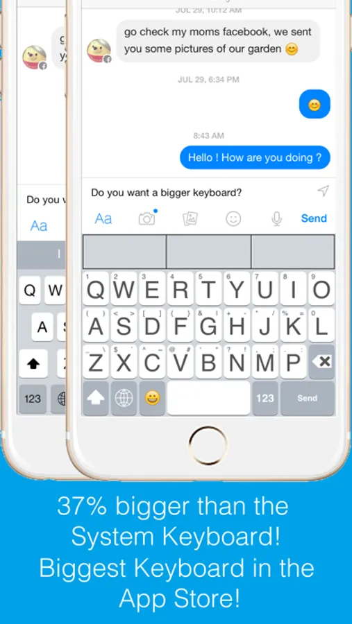 Do you want a bigger keyboard? With the smart highlighted next key hints and fuzzy input? And full Emoji supported? Try out this Biggest keyboard in the App Store!