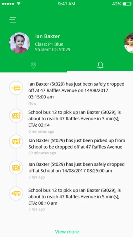 - Parents to have a sub-user account with live tracking of school bus that tells the progress of their kid’s journey along with the estimated time of arrival at their stops.