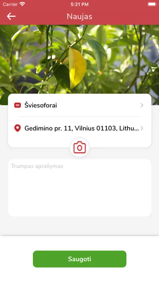 Programėlė, jums leidus identifikuoja jūsų lokaciją ir leidžia pridėti nuotrauką prie pastebėtos problemos.