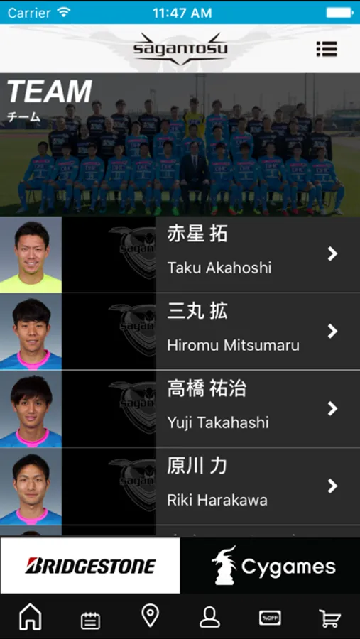 ・チームからの最新情報やスポンサー情報などを受け取ることができます。