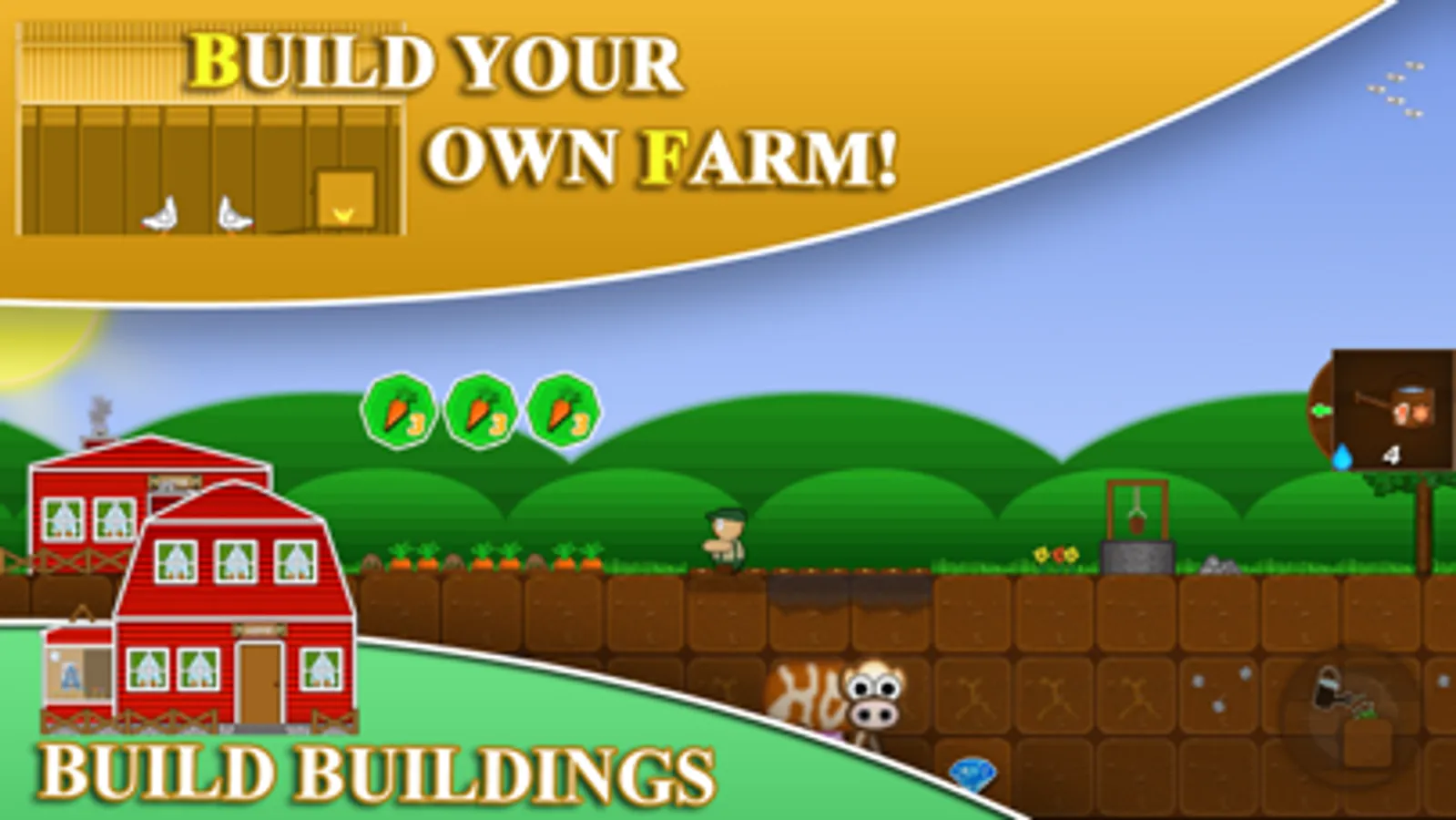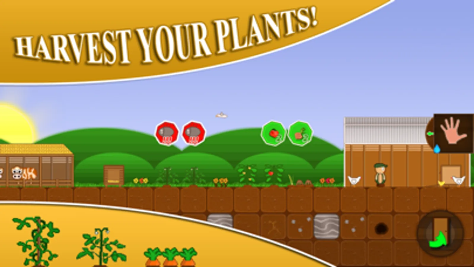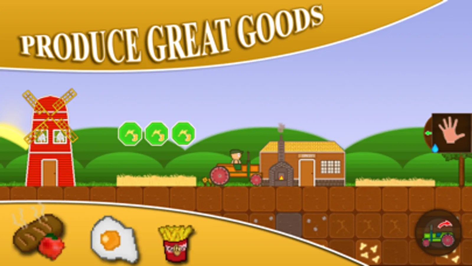Now it´s finally time to build your first farm. At the beginning you can only grow vegetables, but the further you get, the more opportunities you will have, Expand your farm with a henhouse or cowshed to enhance your offered goods. Care your plants and increase your harvest. Build production chains and sell your wares at the market, or later in your own restaurant.