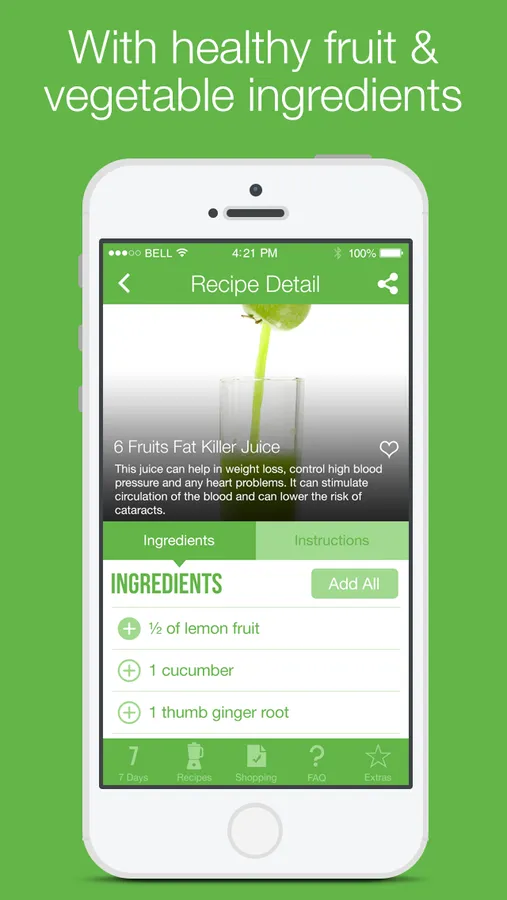 The 7 Day Juice Detox Cleanse app will take you through a natural juice detox cleanse to help re-set your body to its natural best!