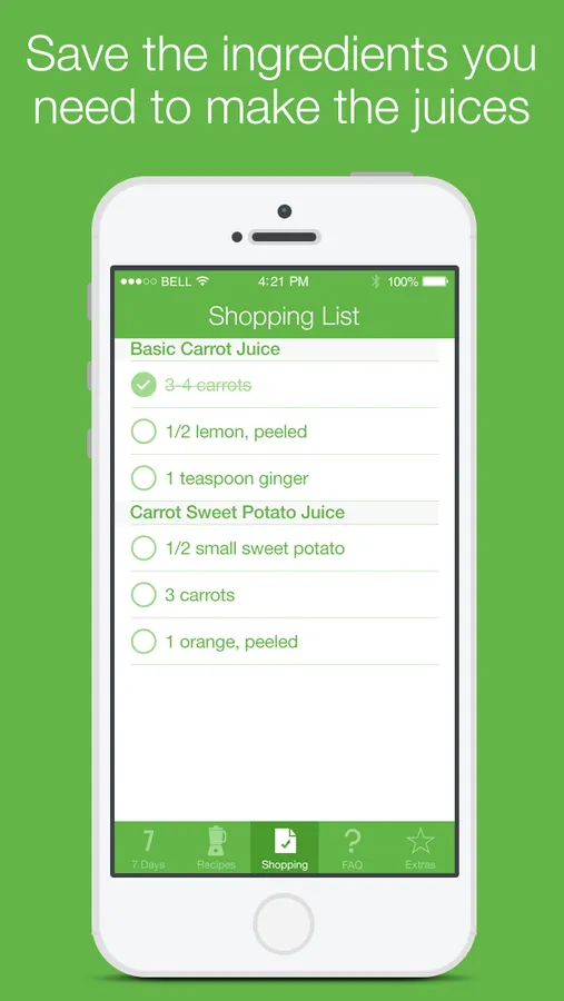 - Shopping lists to keep track of what ingredients you will need for your juices