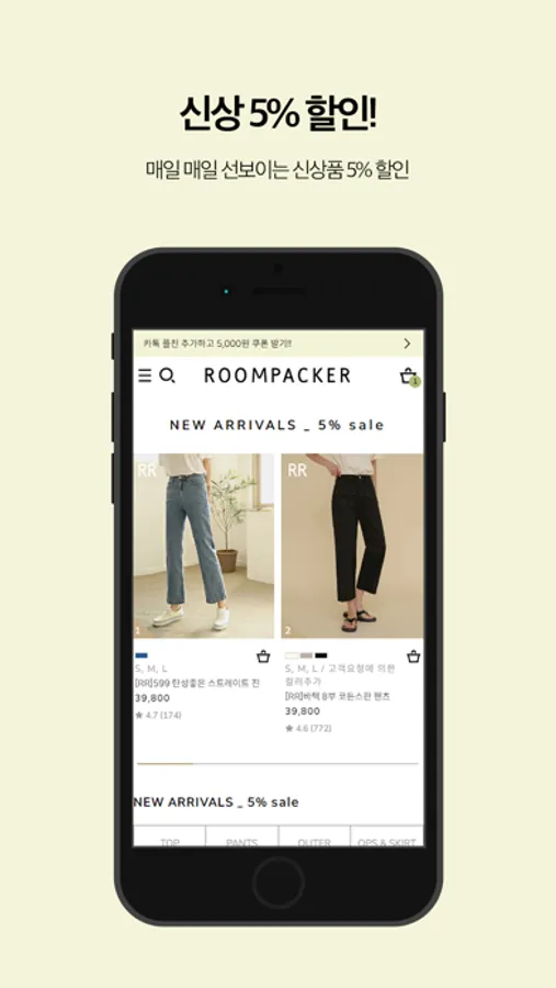 매일 업데이트되는 신상을 72시간동안 5% 할인혜택!