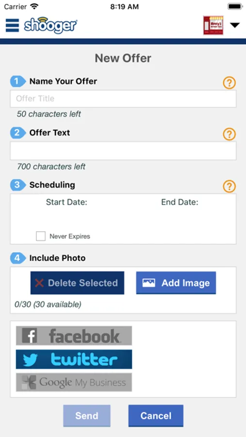 View your account’s performance and get detailed metrics about how customers are reacting to your active promotions on Shooger, including calls, navigates, social media shares, and much more. Shooger’s Merchant app really allows you to close to the loop on your company’s local digital marketing efforts and keep track of its pulse.