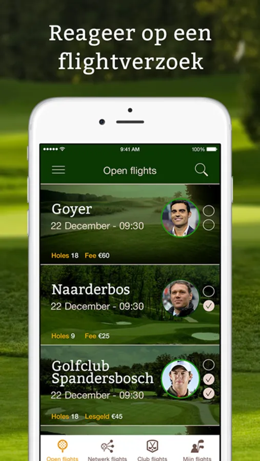 - Stel je zelf je favoriete golf flight samen en reageer op golf flight verzoeken van een golfpro, andere golfers of golfclubs en ga samen golfen in Nederland