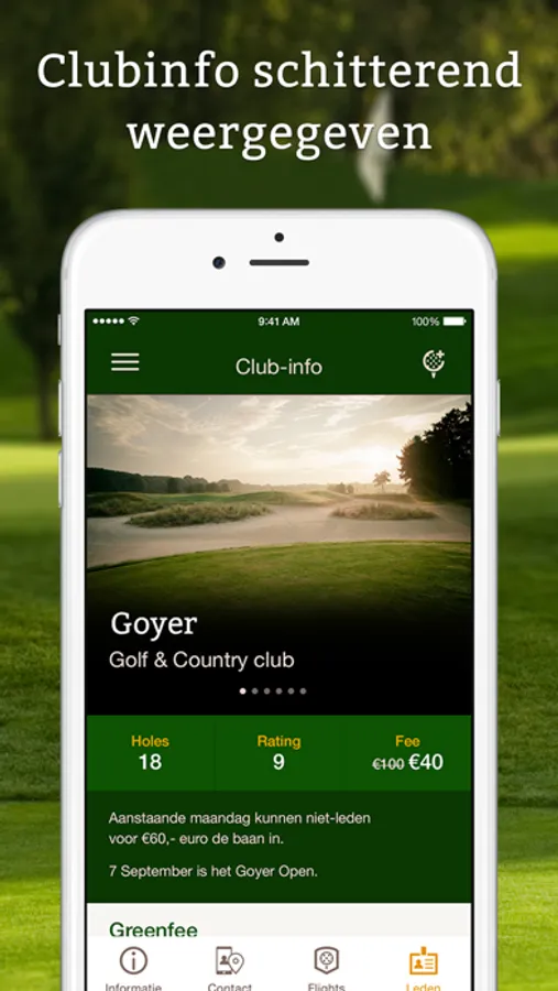 - Blijf op de hoogte van alle activiteiten van je favoriete golfclubs en homecourse
