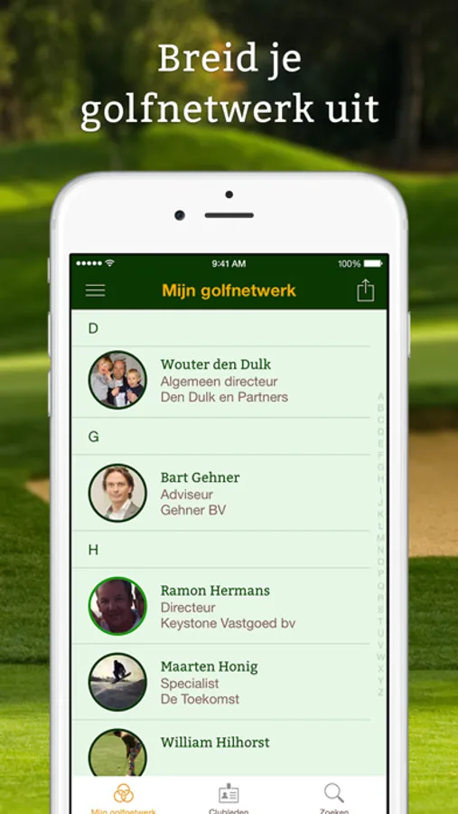 - Spreek snel en makkelijk af met je golfvrienden of met andere golfers op verschillende golfbanen & golfclubs