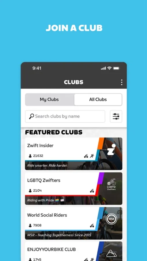 Zwift Companion is a great place to plan your next activity. With all the events in one place and thousands to choose from, you're sure to discover like-minded athletes who want to get fit together. You can also find and join clubs on Zwift Companion.