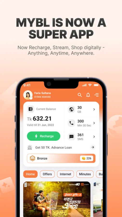 With all the self-services of Banglalink at your fingertips, we are bringing you a new and improved MyBL App! Essential services like checking your balance, dues, usage history, latest offers and much more are now available at the palm of your hand. Just log in to MyBL App and explore new possibilities!