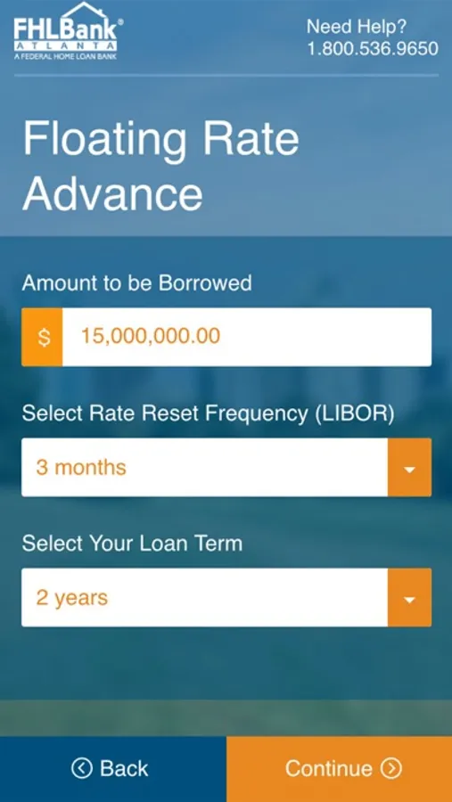 Enter the amount to be borrowed and other terms.