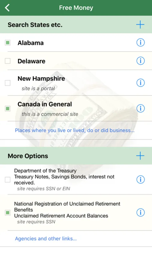 Our App takes you on a Treasure Hunt in all U.S. States, at the Fed. Government, and in Canada. It gives instructions what to do when you find your Unclaimed Money or Property.