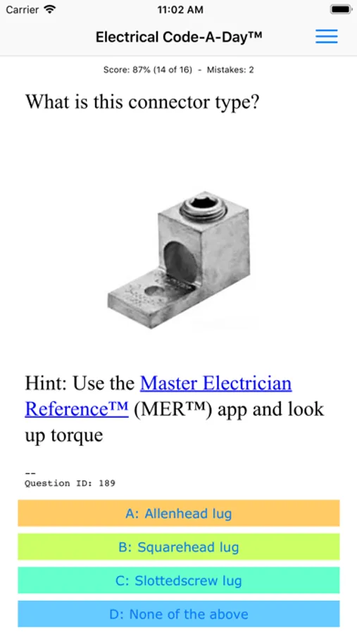 The topics we cover are: ampacity, junction/pull/device boxes, wiring methods, conduit fill, devices, NEMA, electrical safety, lighting, disconnects, panelboards, motor data, electrician terms, derating, box fill, construction support distances, voltage drop, distribution wiring, grounding and bonding, ARC flash, torque, conduit bending, connectors/lugs, hazardous locations, wet/dry/damp locations, trade practices, EMT, Rigid, wiring cables MC/AC/Flex, wire types/insulation, NEC books and lookup, AHJ/adoptive states, electrical part identification, electrical symbols, electrician tools, copper costs, and much, much more.
