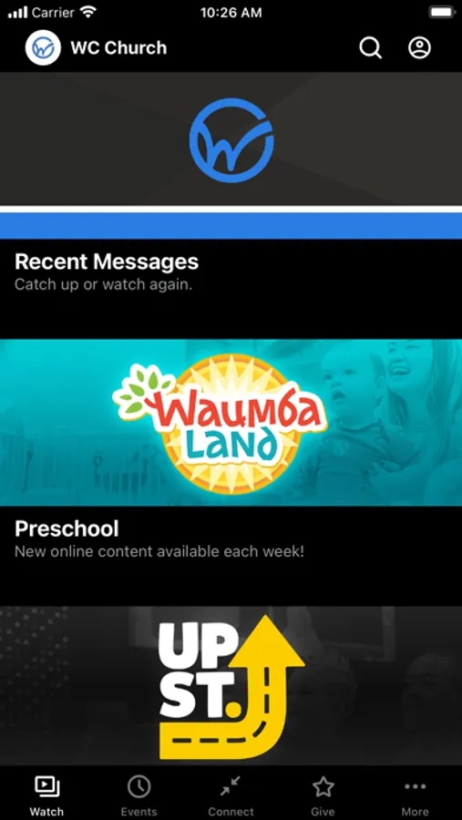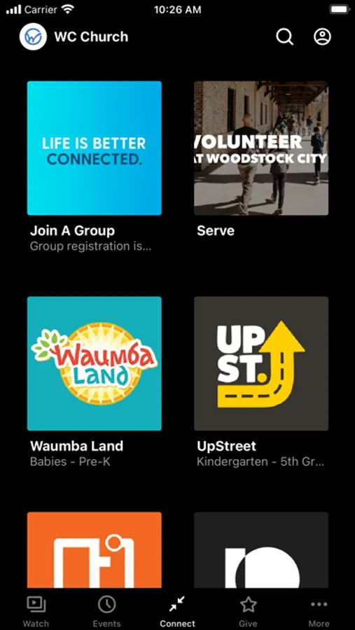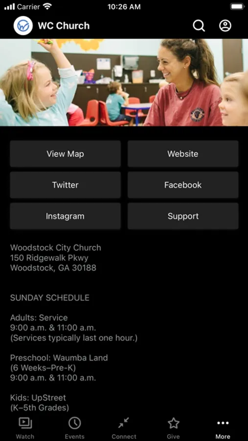 The Woodstock City Church App was created with the Subsplash App Platform.