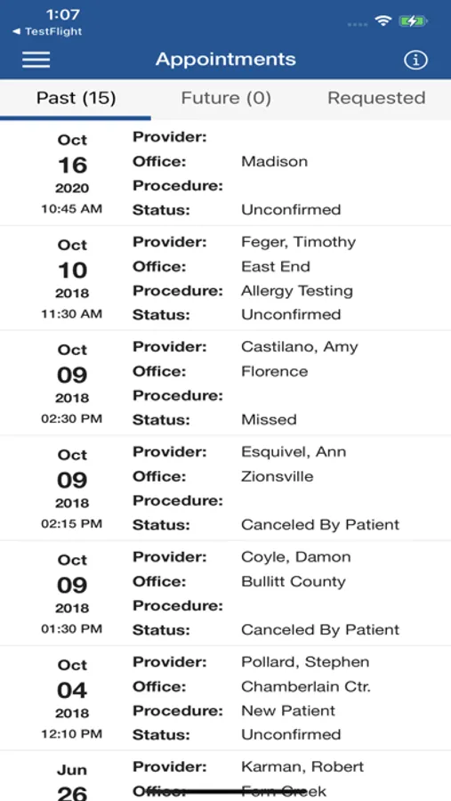 • Today’s Visit: View the current day appointment details, check in with the QR code or proximity beacons, verify demographics, sign forms, and also pay bills