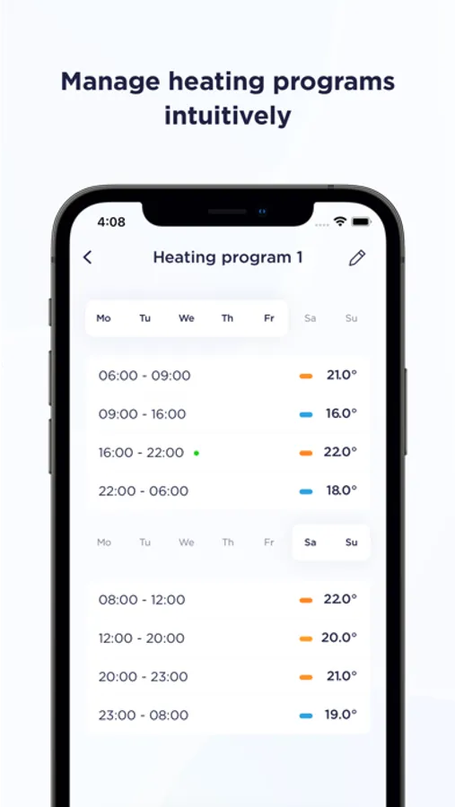 With myComfort from Windhager you can quickly guide your individual heating system everyday from your trusted smartphone or tablet in a userfriendly, simple way. Whether you are at home or on the road, your heating system is always under control and you can regulate it from anywhere. You can set the temperature for when you come home or save energy when you leave your house.