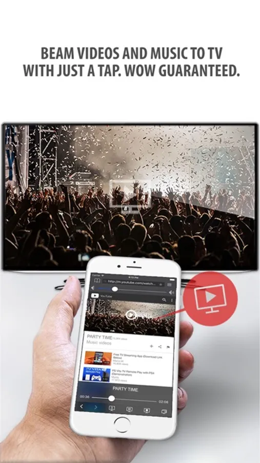 Stream web videos and music from your phone to your TV wirelessly and for FREE.