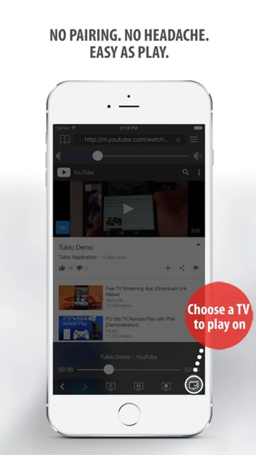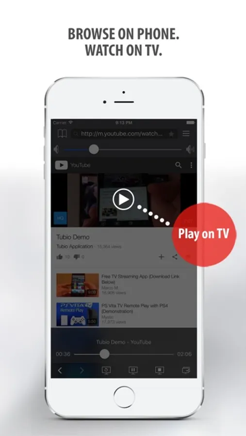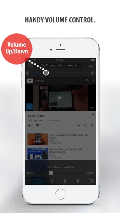 Use Tubio as your TV remote to control the stream - play, pause, stop or seek. You can also adjust volume.