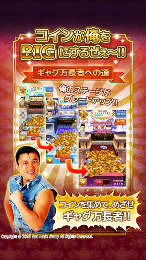 コインを大量に集めると【路上ライブ】▷【テレビ出演】▷【レッドカーペット】とステージがランクアップ!