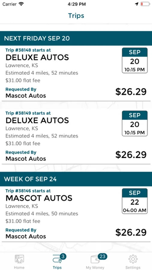 • Schedule your trips and track your drivers with our intuitive mapping interface.