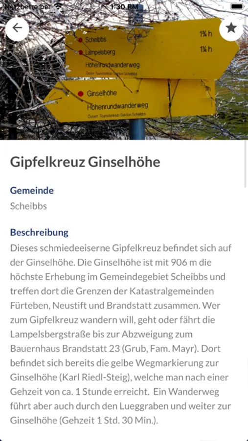 Mit der MarterlApp können Sie sich über die Kleindenkmäler, die Sie bei Ihren Wanderungen und Fahrradtouren durch das Land finden, schlau machen. Die App zeigt ein Foto des Kleindenkmals, die Gemeindezugehörigkeit, die Denkmal-und Zeitkategorie, sowie Geschichtliches und eine Beschreibung. Ebenso erfährt man, wie weit das Objekt bereits erfasst wurde. Ein Balken gibt den Erfassungszustand des Objekts von „zur Ansicht freigegeben“ über „wesentliche Felder erfasst“ bis „vollständig erfasst“ an. Bei Objekten die im Rahmen des Leaderprojekts „Zeichen unserer Kulturlandschaft“ erhoben wurden, findet sich auch das Projektlogo. Wenn es zu dem von Ihnen entdeckten Flurdenkmal noch keine Informationen und kein Foto gibt, können Sie das Marterl selber eingeben. Dazu ist vorher die Registrierung auf der Kleindenkmalplattform www.marterl.at nötig. Ebenso wenn Sie einen Kommentar zu einem Objekt hinterlassen wollen.