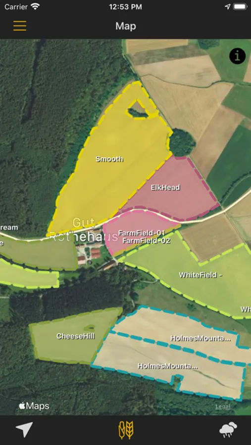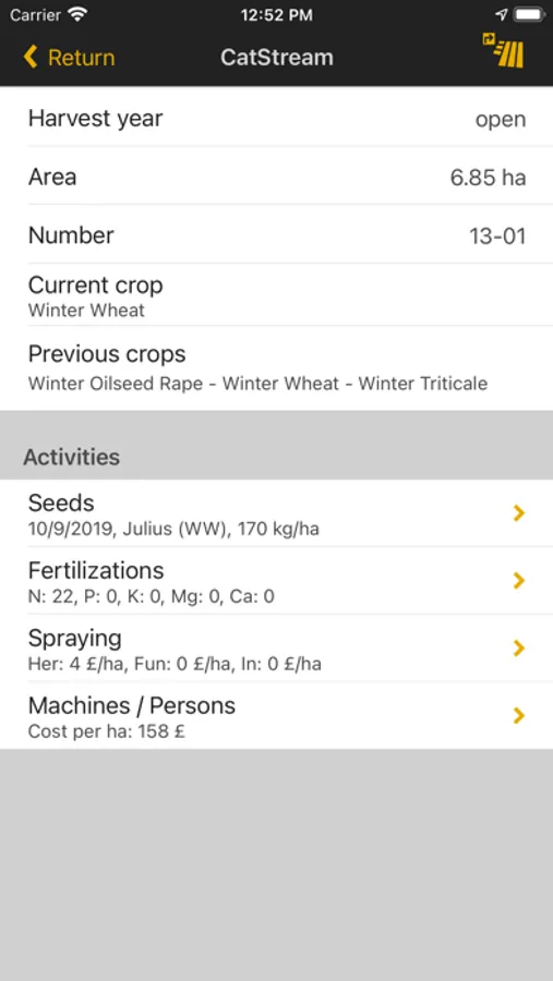• Clear map with field and cultivation overview and field navigation.