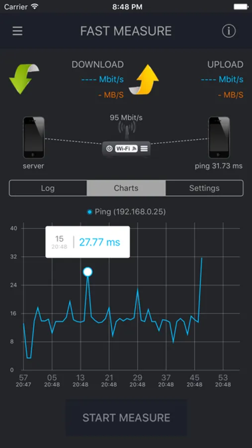 This app will allow you to test and troubleshoot your wifi network. It will be very useful when you want to test bandwidth of your wifi, ethernet or mixed network, but your internet connection is too slow (for example 10 Megabits per second), and your router can provide much faster speed between devices in local network.