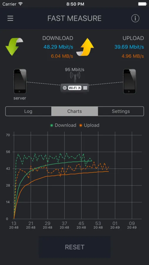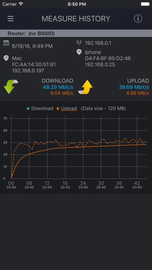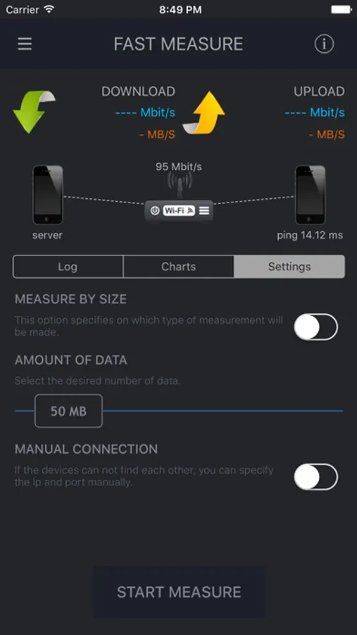 - Test network bandwidth (connect two devices to one wifi network, start the app and test your network bandwidth in one tap). You don't need an internet connection for tests.