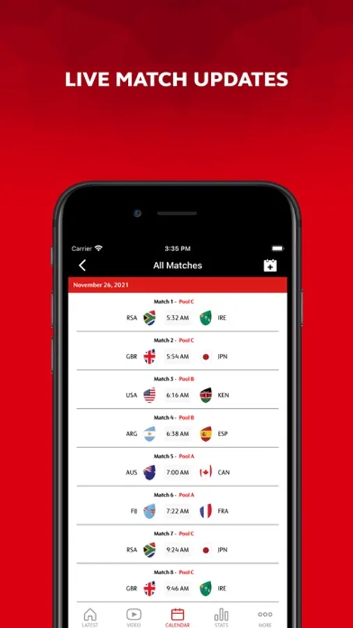 • Personalise your experience to receive match notifications for your favourite team