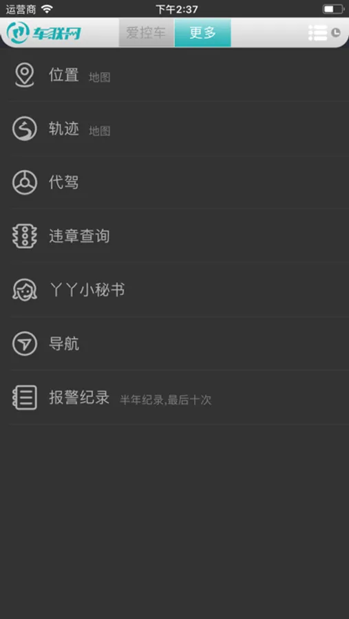 丫丫车联网是一个远程控车软件。你可以随时随地通过手机像钥匙一样控制你的车辆。比如设防、撤防、启动等等。为了减少盲区,提高可用度,丫丫车联网支持语音通道、短信通道、在线通道等控制。通过丫丫车辆网,你可以随时了解车辆的安防状态、车辆的位置、车辆的状态等等情况,还能查阅历史轨迹,进行违章查询,召唤代驾司机。
