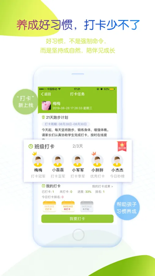 ●家校互动核心升级。单聊、群聊、图文、语音……通讯录内全部成员随心对话,互动畅聊!