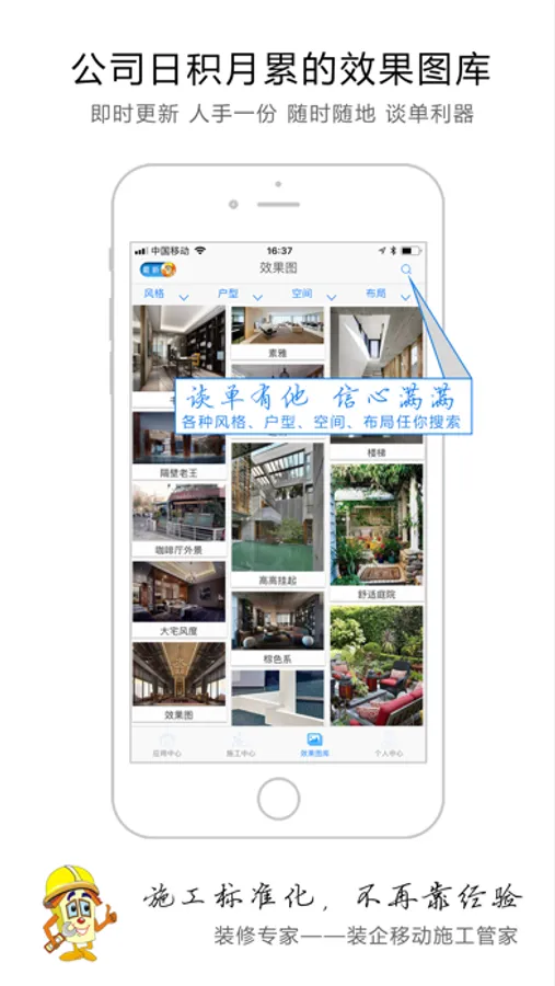 【软件特性】无开发商痕迹,企业完全可以当做自主研发的APP展示在员工和客户眼前。是装修企业实施工地管理和工地营销的得力助手,是企业管理中的基础大数据构成。