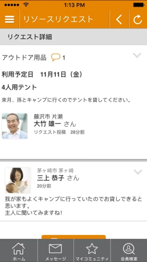 モノやスキルなどで困ったときに、コミュニティに助けを呼びかけることができます。