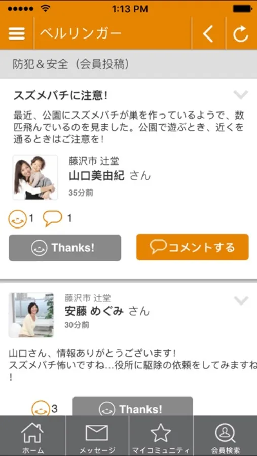 地域のお役立ち情報をリアルタイムに伝え合うことができます。