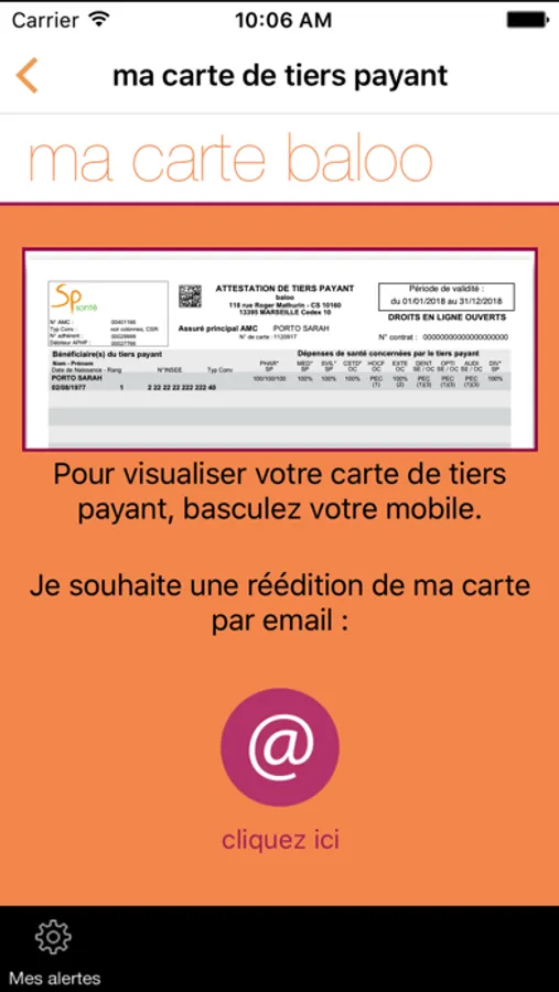 Le plus baloo : Votre carte de tiers payant est toujours sur vous ! Vous pouvez la présenter aux professionnels de santé grâce à votre mobile.